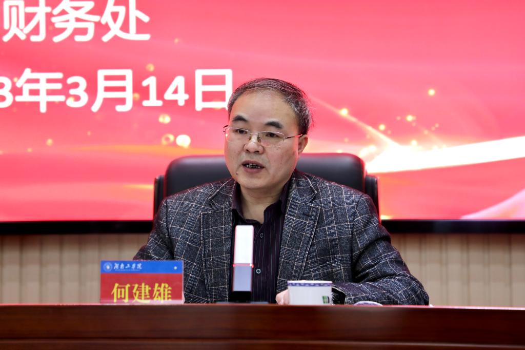 3月14日上午,学校在船山报告厅召开2023年预算编制会议,校党委委员、纪委书记张治春出席会议,校党委委员、副校长何建雄主持会议。